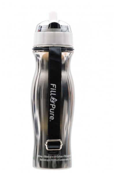 The Fill2Pure Bottle removes 99.99% of all contaminants while you drink! Fill up from any tap, anywhere with peace of mind.
